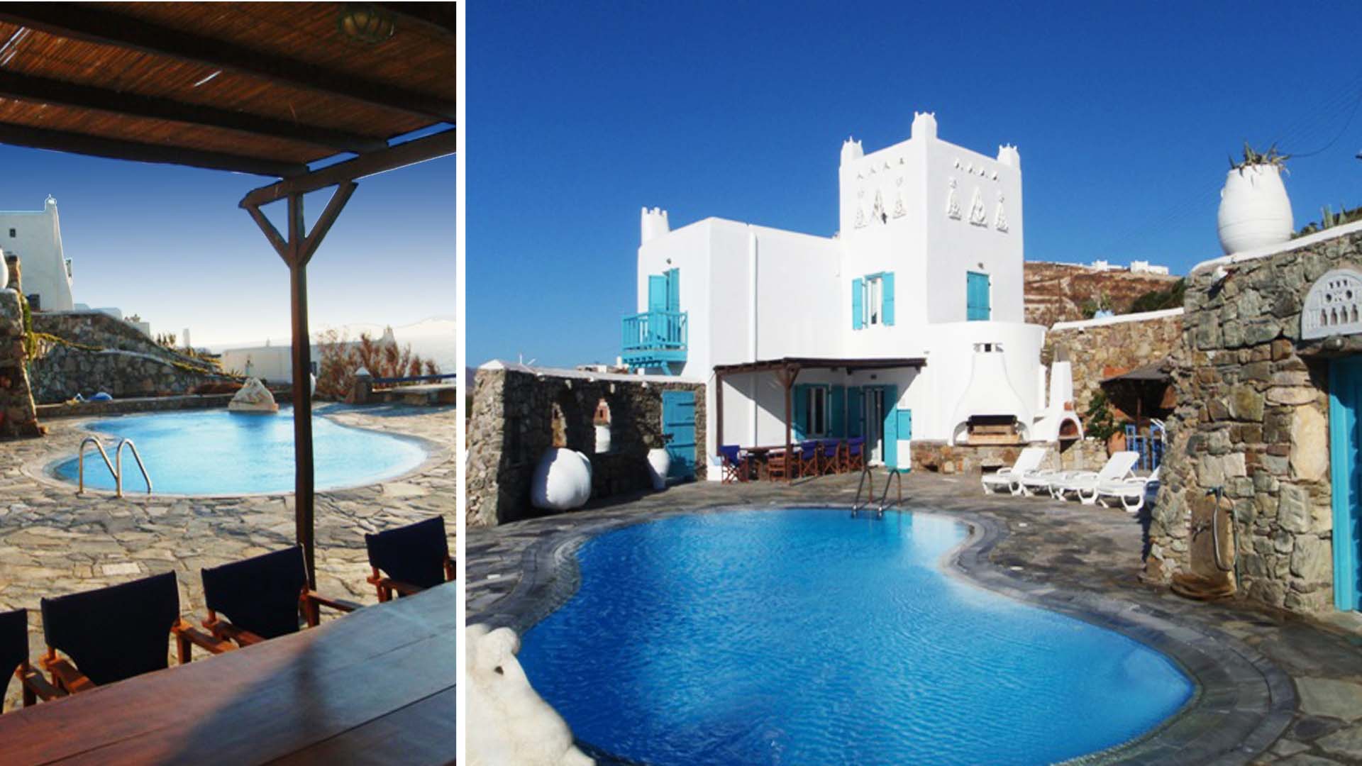 Casa accogliente e deliziosa, climatizzata, costruita in stile tradizionale delle Cicladi, piena di oggetti d’antiquariato e opere d'arte e di artigianato locale. La bellissima piscina di acqua di mare è circondata da un terrazzo ampio con un grande tavolo da pranzo ed un patio privato ben ombreggiato e ben attrezzato con angolo barbecue, bar e tanti comodi lettini.